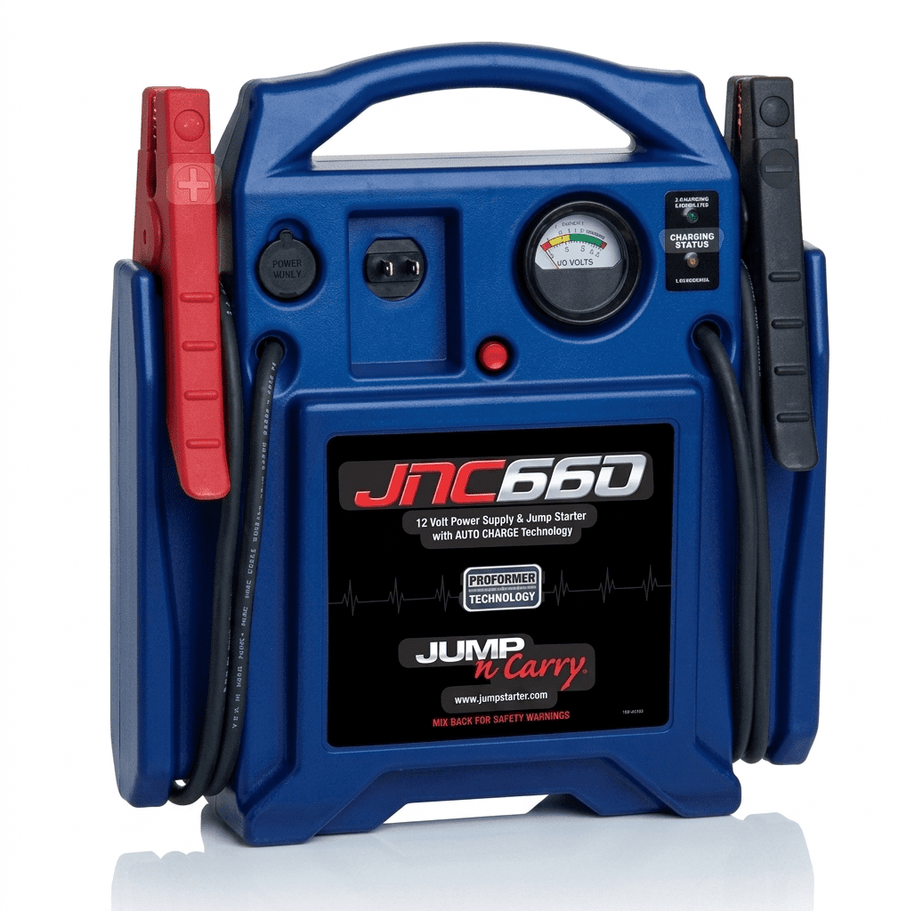 Heavy-duty JNC660 Jump Box with 1700 peak amps. Reliable jump starter for trucks, cars, and auto hauler professionals.